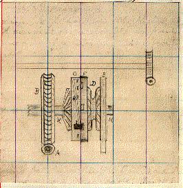 Anchor engine The anchor engine is placed in a compartment raised above the Berth Deck, forward of the forward barbette, and extending up above the Main Deck about three feet. It is a double expansion steam engine which gears by means of a worm (A) with the large worm wheel (B) and also with the wheel (C) (which turns the cat and fish winch) immediately above. The wild-cat (D) has a break (E) consisting of a steal band in a cast iron groove; the band is compressed by a lever worked by a screw. (F) is a hollow cylinder fixed to (D). (G) is a cylinder fixed to (B), and turning partly within (F). On (G) are two screw threads (H) and a similar one on the other side, In the threads slide the chocks (I). The figure shows the wild-cat linked to the worm wheel. To disconnect them, a hand lever is inserted in one of the holes in (G) and it is turned until the chock (I) is screwed to the inner side of (G) and out of the notch in (F). (B) may then turn without (F) to heave in chain on the other side; or (D) is free to veer. An exactly similar wildcat in on the left of (B), and at (K) are supports.